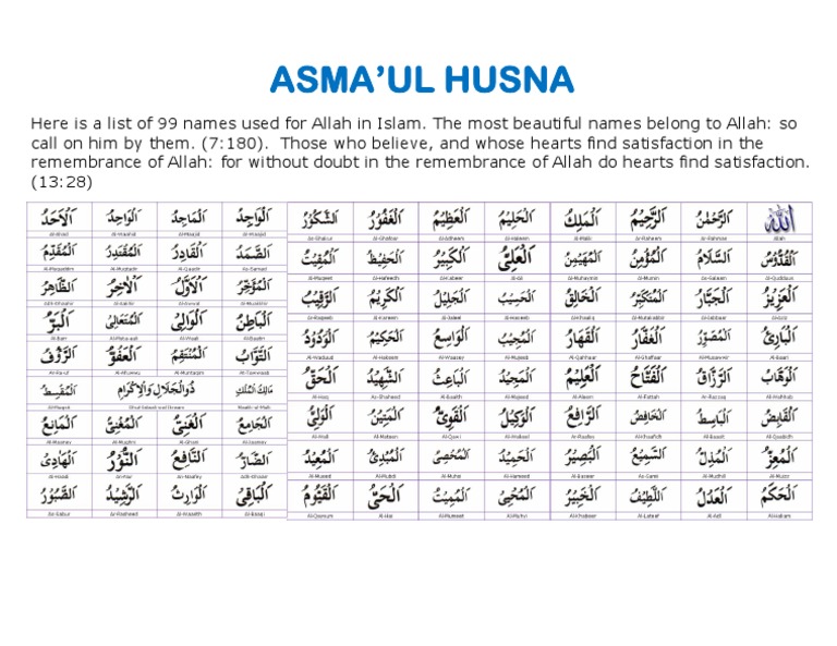 Asmaul Husna - Asmaul Husna Arabic Romawi Pdf. Learning and memorizing the names of allah will help us to. Berikut ini 99 nama asmaul husna dan artinya: Istilah asmaul husna juga dikemukakan oleh allah swt dalam surat thaha:8 yang artinya: Berikut ini adalah 99 nama allah swt (asmaul husna) beserta maknanya: As muslims, we believe in allah (swt) in accordance with his beautiful names and attributes.